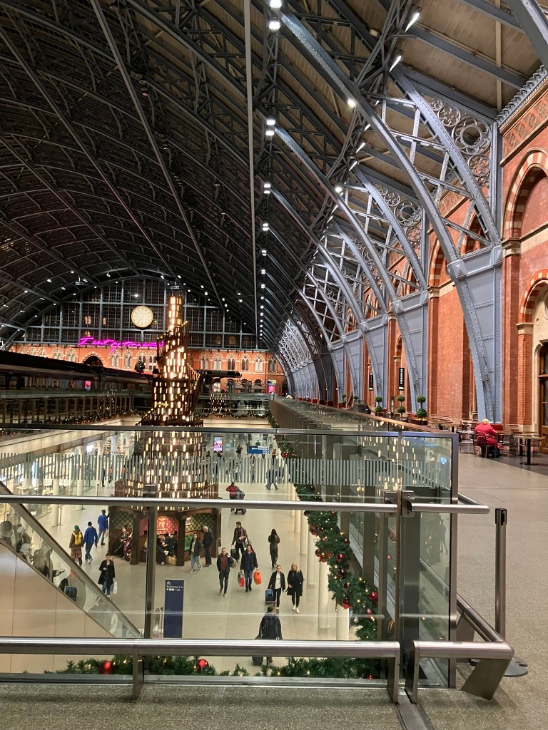 After a few restful days in Romsey, it was time for the next adventure, which was our first ever ride on the Eurostar. This got us from London to Amsterdam in about 5 hours. In 1983, Rory did the same trip by ferry–it took more like 16 hours. First we got to take in the lovely St. Pancras train station, which is where the Eurostar launches from.