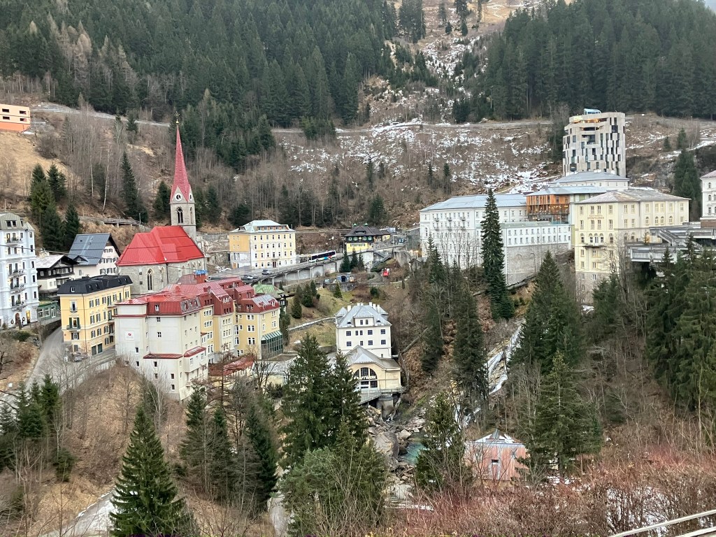 A very short language lesson–the word “Bad” is German for bath or spa. There are numerous towns in Austria and Germany with that word in their name, and usually it means that the town hosts some sort of naturally occurring thermal spa. Austria’s Bad Gastein is one of those towns, located about 3 hours north of Ljubljana by train. And train is a perfect way to get there–the Bad Gastein train station is right at the main gondola station to go up the mountain. It was also 200 m from our friendly, family-run little pension.